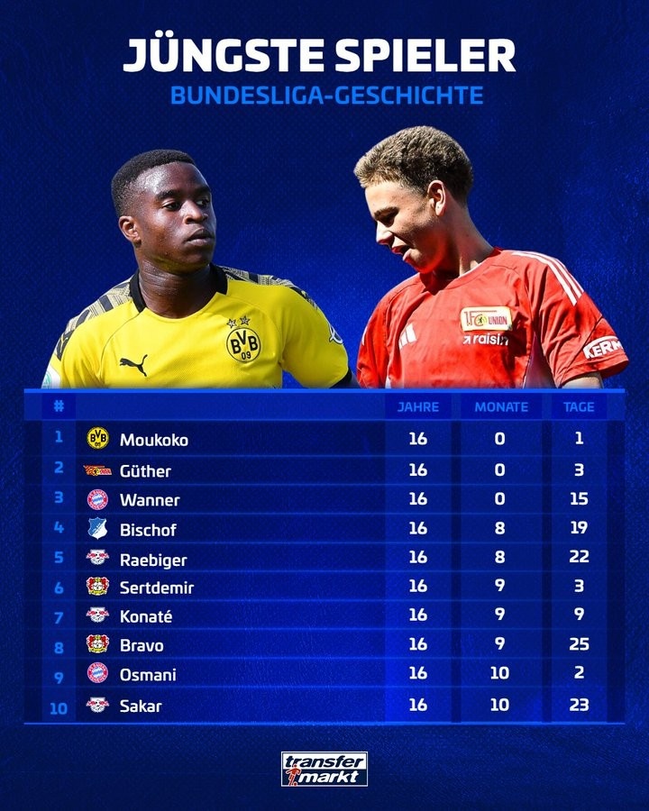 16岁3天!柏林联小将成为德甲历史第二年轻首秀球员,仅次穆科科